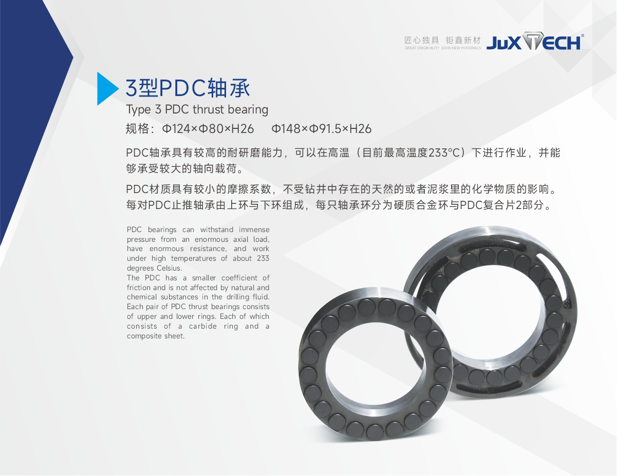 PDC軸承具有較高的耐研磨能力,可以在高溫(目前最高溫度233℃)下進(jìn)行作業(yè),并能夠承受較大的軸向載荷。