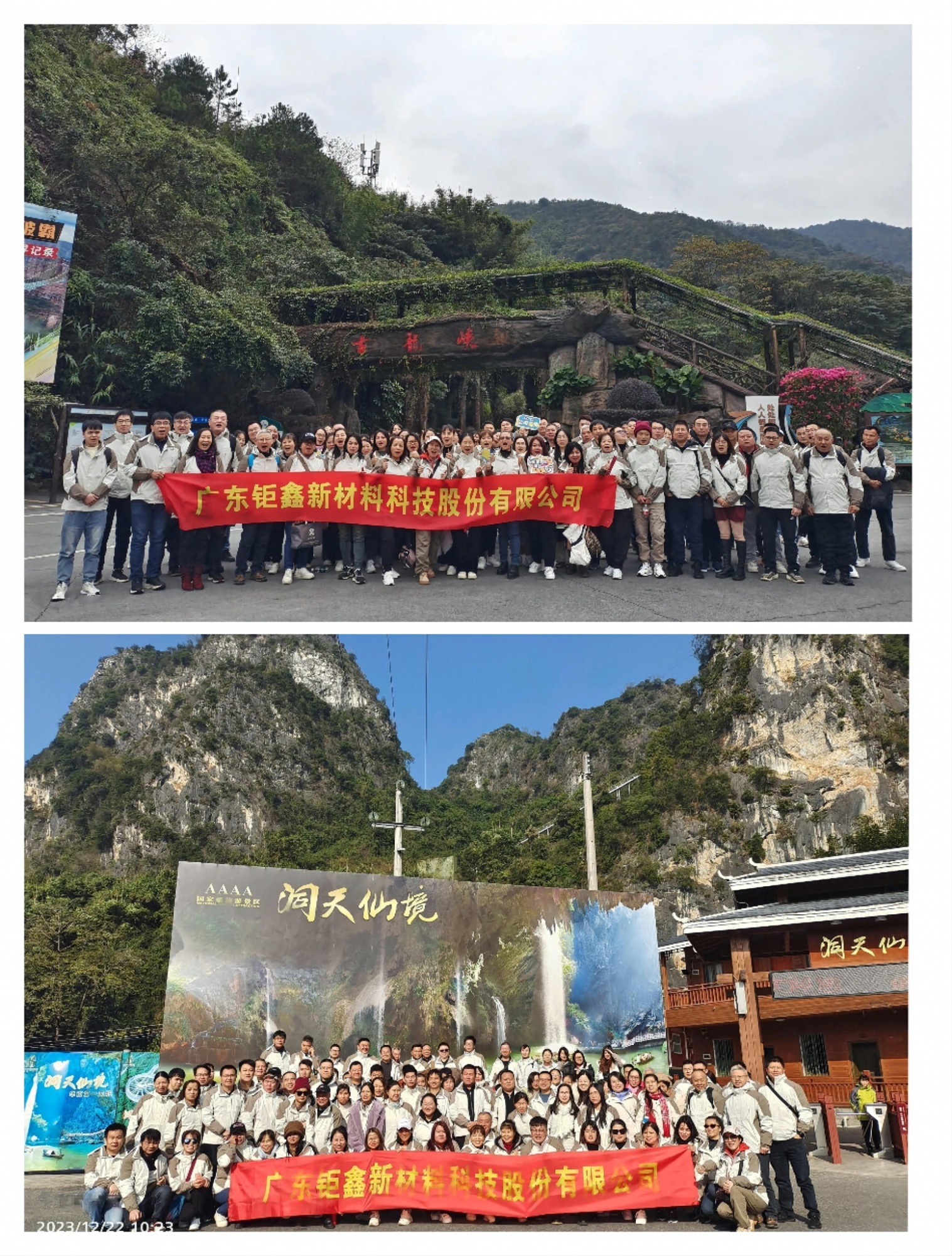 2023年12月21日,鉅鑫公司組織全員到清遠古龍峽和洞天仙境開展團建旅游活動,欣賞美景,感受大自然的鬼斧神工,帶大家遠離塵囂,共赴一場大自然的約會!