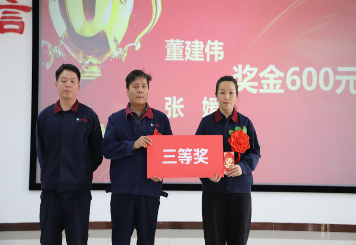 緊接著,獲獎人員代表紛紛上臺進行成果展示,分享了他們在改善創(chuàng)新實踐中的經(jīng)驗和心得。他們勇于探索、勤于鉆研的精神,為全體干部員工樹立了榜樣,為公司改善創(chuàng)新工作的開展注入了新的活力。隨后在原料廠分享完管理經(jīng)驗后,頒獎環(huán)節(jié)拉開序幕,獲獎單位及個人依次登臺領(lǐng)獎,接受公司授予的崇高榮譽。